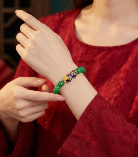 Green Jade Bracelet with Pixiu – Invite Wealth & Calming Energies