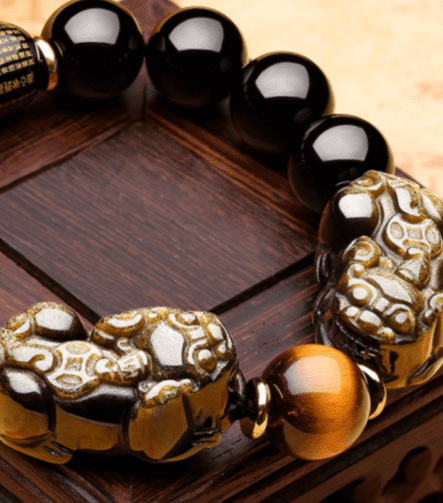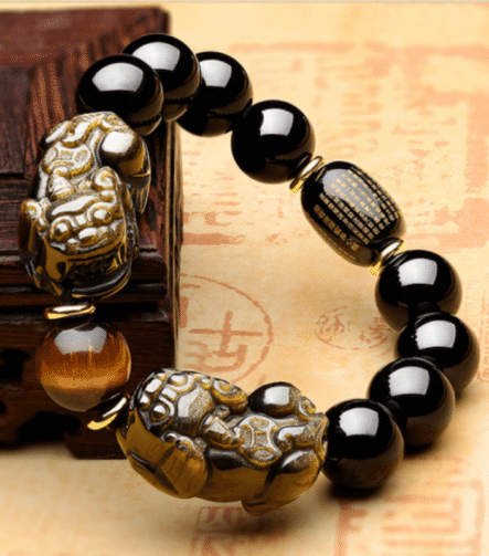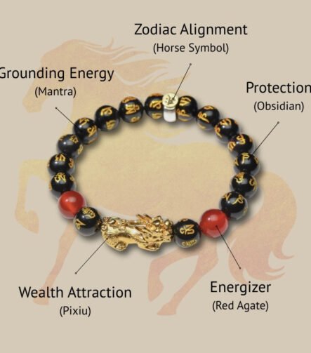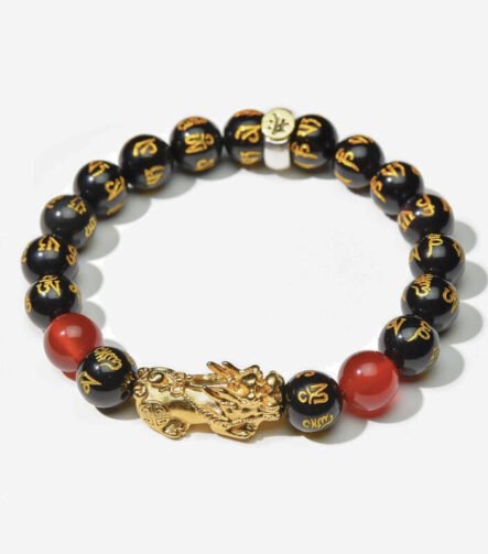 Year of the Fire Horse Wealth Bracelet – Black Obsidian Red Agate Pixiu Bracelet